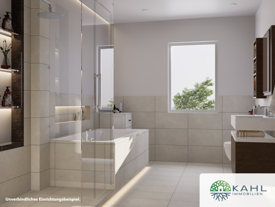 - Ausstattung des Bades Badewanne, Dusche, Fenster